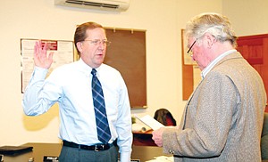 Coldwell then swore in City Judge Terrie Lenhart after a bit of procedural assistance from City Clerk Tracy Rebo.
