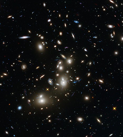 To do this, Hubble is using one of Albert Einstein's concepts that massive clusters of galaxies have such super gravity that they magnify and stretch light, Lotz said. By focusing on clusters, astronomers use them as natural binoculars to see what's behind them.