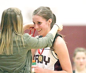 Sami Rohrich received the US Bank Sportsmanship Recognition Award during the matchup with Bigfork Friday evening. (Katie Lundin presenting the award.)