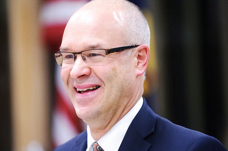 Mark Flatau interviews for the Kalispell Public Schools Superintendent position Monday night at Kalispell Middle School. Jan. 13, 2014 in Kalispell, Montana. (Patrick Cote/Daily Inter Lake)