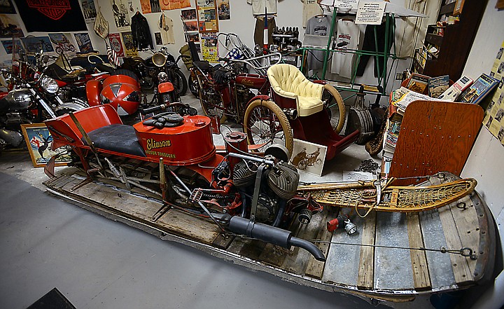 A 1943 Eliason Motor-Toboggan owned by Gil Mangels is part of the “Think Snow” exhibit at the Miracle of America Museum in Polson.