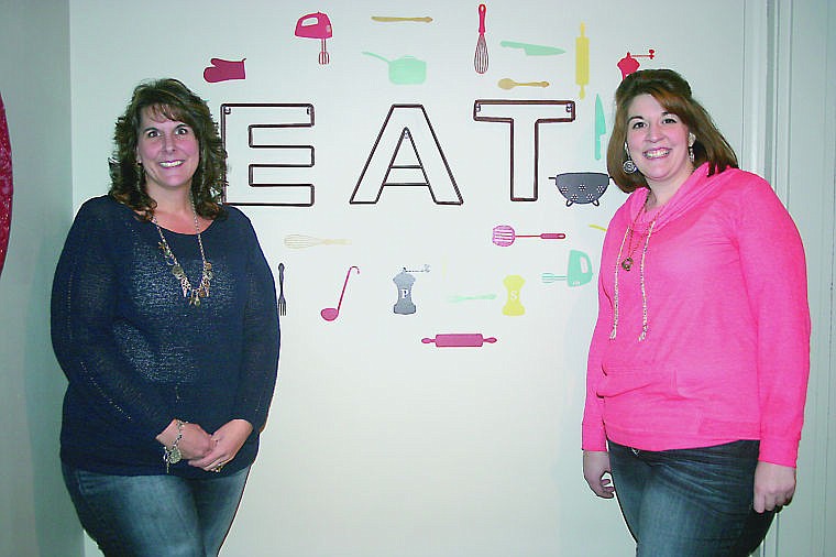 Heather and Courtney Worrall stands next to some of their new decor Restaurant: Impossible provided them.