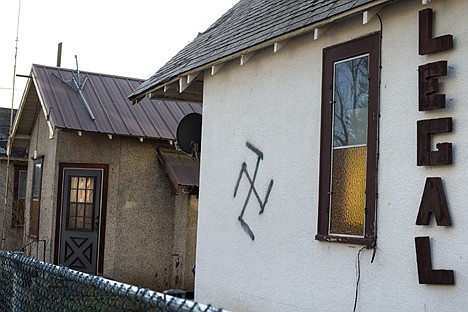 COEUR d'ALENE - A large swastika-like symbol was spray-painted onto the wall of the Law Shop in Coeur d'Alene sometime Monday night.
