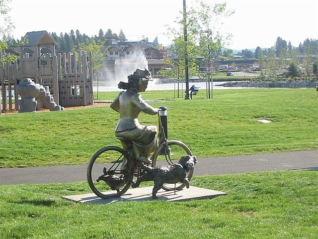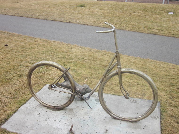 Sometime between Friday night and early Saturday morning, parts of a statue depicting a 1920s-era woman on a bicycle being followed by two dogs were stolen.
