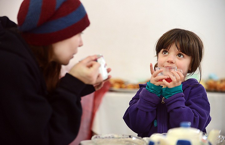 Ameilia Torppe, 4, shares a spot of tea with her mother, Jessica, of Kila, on Wednesday morning at Woodland Montessori School’s annual Starlight Tea. According to owner-director Sally Welder, the event began as a holiday celebration in December but was moved to January as a way to brighten the new year.