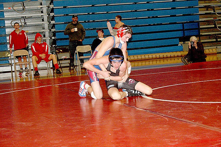 Anthony Parkin grapples with a Granite player during the quad matches hosted by Superior Tuesday evening.