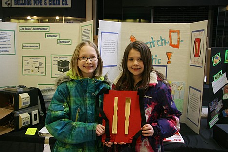 John Brown Elementary School students Shayla Merrifield, 12, and her sister Kinsey, 9, invented the "Scratch-O-Matic," an adaptation device that prevents sore arms caused by reaching to scratch one's back. Shayla said the most fun part was building the 3-D model.
