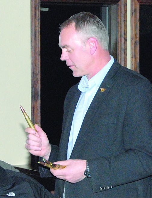 Zinke finished his speech by handing out 50-calibre bullets to each of the four men who sponsored the event before a crowd of about 30 people.