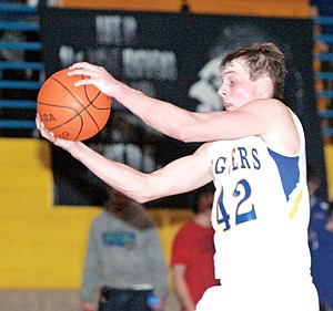 Quinn Sullivan pulls down a third quarter defensive rebound vs. Thompson Falls 1-24-14