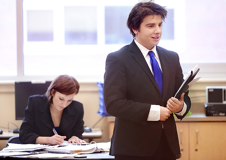 Flathead senior Sam Williams and Sierra Hansen compete in Public Forum at the Montana State AA Speech and Debate Tournament on Friday, January 31, at Glacier High School in Kalispell. (Brenda Ahearn/Daily Inter Lake)