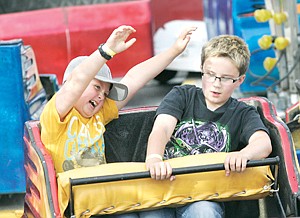 Fun aboard Paradise Carnival's "Twizzler" with Gaige Bache, left and David Beck.