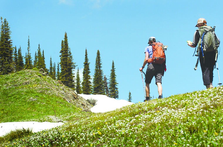 The Kalispell woman and her hiking companion, Amber Steed, used skis, climbing skins and hiking boots to cover a wide variety of terrain in the Jewel. They marched over snow-covered forests still strewn with debris from a long winter, and they enjoyed walking on dry trails on exposed alpine ridges.