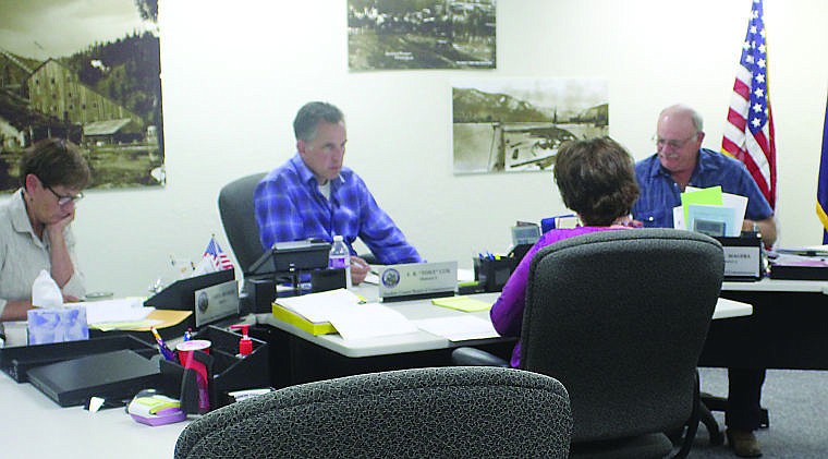 County Commissioners Carol Brooker, Tony Cox and Glen Magera meet with Clerk and Recorder, Nichol Scribner last week.
