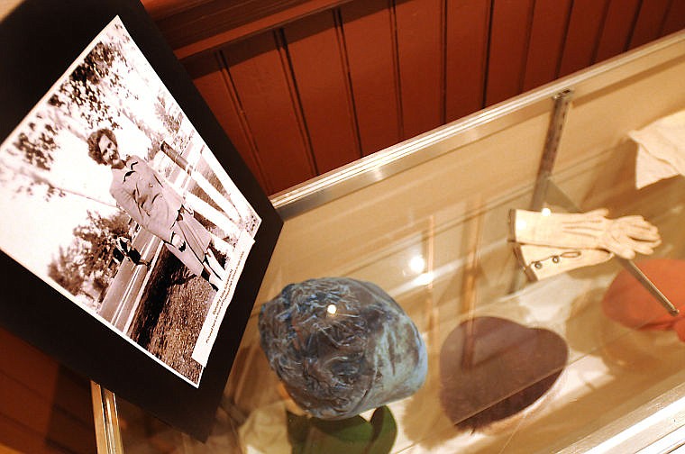 A photograph of Dorothy Schoknecht from the 1930son display with hats and other personal items that belonged to her and her mother, Julia Neils Schoknecht on June 19, at the Museum at Central School in Kalispell. (Brenda Ahearn/Daily Inter Lake)