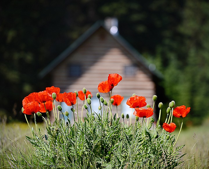 Bright poppies bloom outside a cabin in Polebridge on Tuesday, July 1. (Brenda Ahearn/Daily Inter Lake)