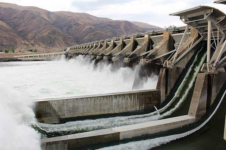 "At Wanapum, we cut a hole right through the dam," Dotson said. That project was completed in 2008, according to the PUD website. Juveniles ride the current through the fish bypass gate and "boom, straight down they go," Dotson said.