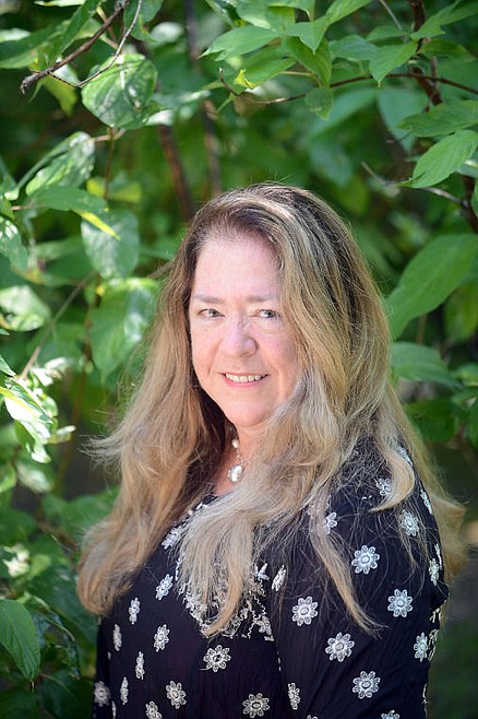 Maura Fields stands outside her home surrounded by the greenery cultivated over 22 years, on Thursday, July 10, in Whitefish. (Brenda Ahearn/Daily Inter Lake)