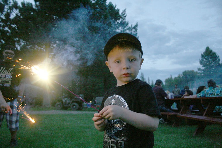 Jacob Lapenski waves a sparkler in the air during the fireworks show at the St. Regis community park.