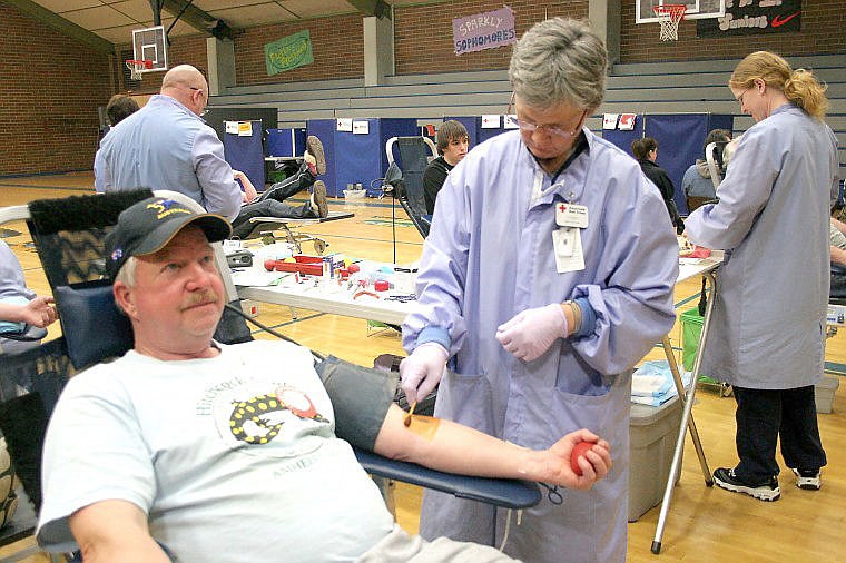 Mark Sheets of Thompson Falls prepares to give blood in the Thompson Falls High School gym at a blood drive in 2012.
