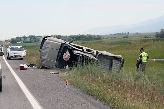 The pickup struck an barrier, sailed almost 100 feet, then rolled end-over-end, according to Montana Highway Patrol officials.