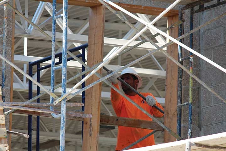 MOSES LAKE - Workers are putting the finishing touches on the exterior of the new pool building at Moses Lake High School.