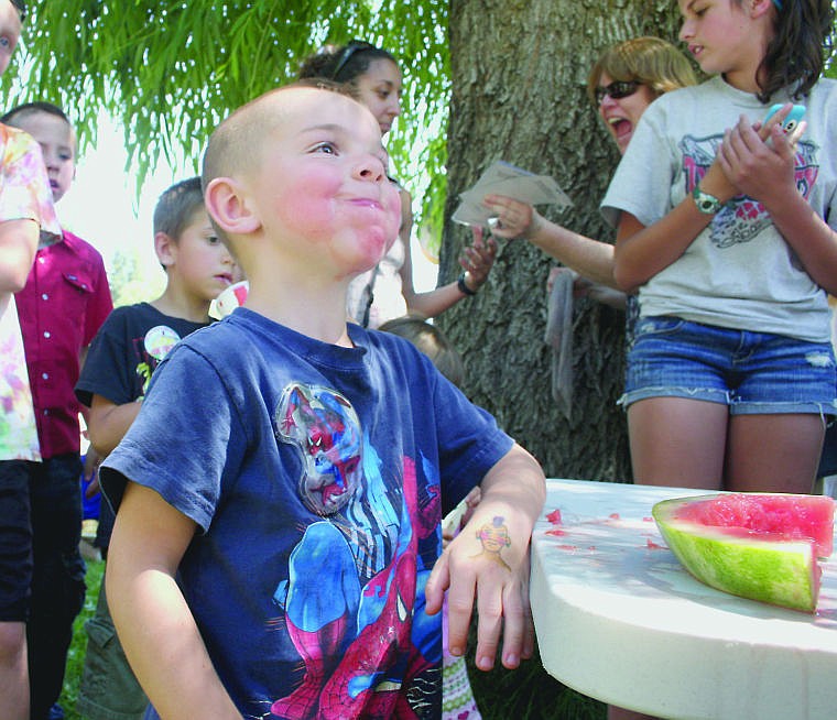 A young contestant competes in the watermelon eating contest during last year's Railroad Day in Alberton.