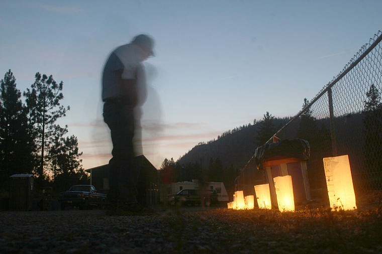 Orvil Thompson looks at luminarias during the 2014 Relay For Life event in Superior on Friday evening.