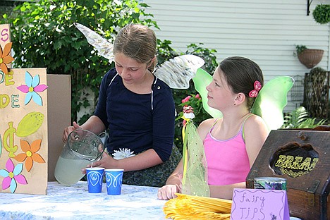 Jamie Provost, 11, of Coeur d'Alene, wore fairy wings with her best friend, Hayden Levy, 11, of Coeur d'Alene, as they sold 50-cent lemonade with Hayden's little brother, Benjamin, 7.