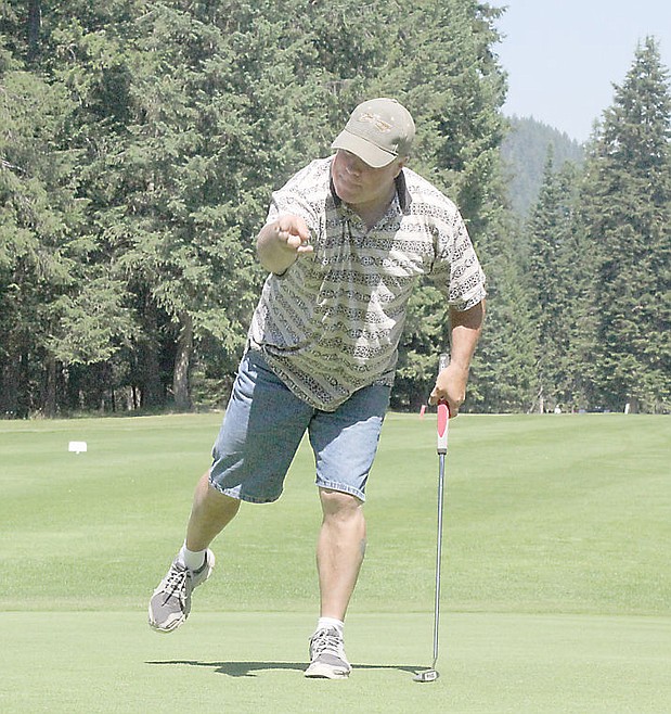 Steve Anderson of Trout Creek celebrates after draining a challenging put during the annual Cabinet Ridge Riders golf tournament at River's Edge Golf Course on Saturday.