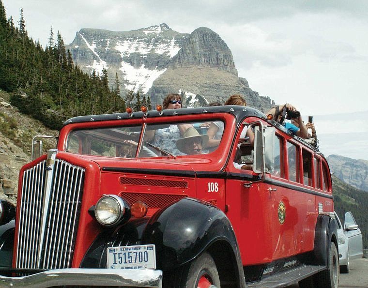 The Glacier fleet is considered to be the oldest touring fleets of vehicles in the world. Each red bus on average transports 60,000 visitors through Glacier Park in summertime.