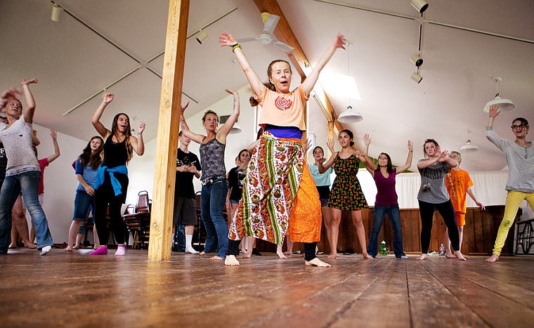 Dance instructor Leslie Yancey leads a group of students at the Share Your Voice Foundation in an african dance Tuesday afternoon at the Bohemian Grange south of Whitefish. The students will perform at the annual Night at the Landing event at Stillwater Landing on Saturday, July 26th. July 22, 2014 in , Montana. (Patrick Cote/Daily Inter Lake)