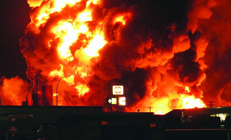 A fire burns at Red River Supply in an industrial part of Williston, N.D., early Tuesday. (AP Photo)