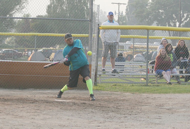 Jason Frost makes contact during one of the games in the annual S & S and Nugget Lounge Softball Tournament in Superior last weekend.