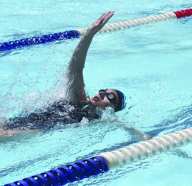 Danika Whitcomb performs the backstroke at an earlier swim meet this season.