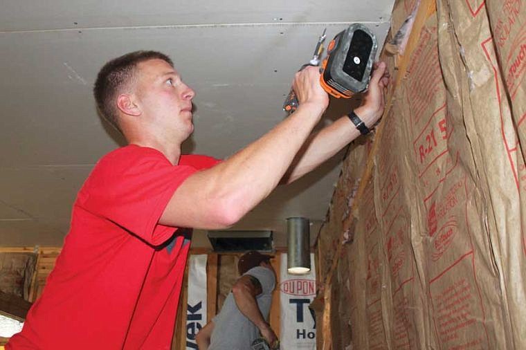 The volunteers are helping to finish a meeting and dance hall room in the back of Moses Lake's American Legion. Post Commander Richard Radder said the project is part of the Legion's effort to attract younger veterans returning from duties in Iraq and Afghanistan.