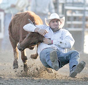 Bridger Chambers of Stevensville with a time of 7.0 in the steer wrestling event Saturday.