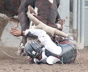 Jesse Kardos of Newport, Wash., has a close call with "Navajo Joe" Friday night.