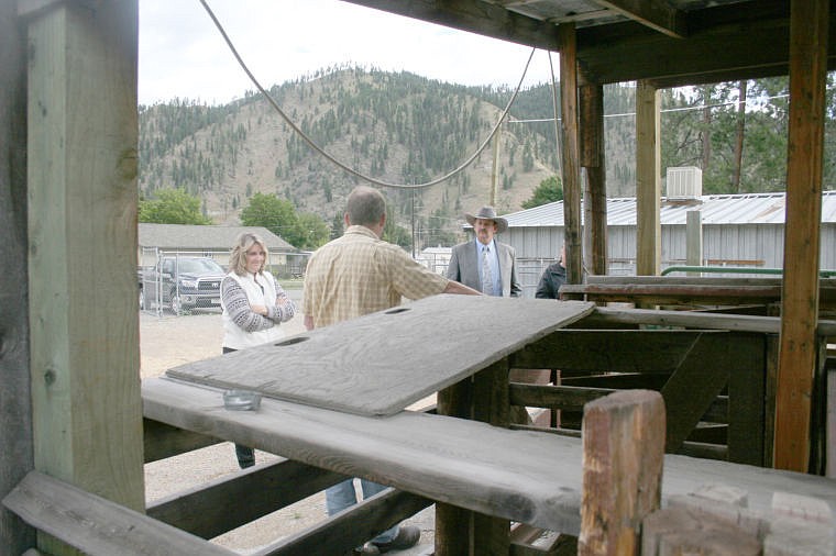 County commissioners listen to Dave Brink of the Mineral County Extension Office explain the fairground's needs.