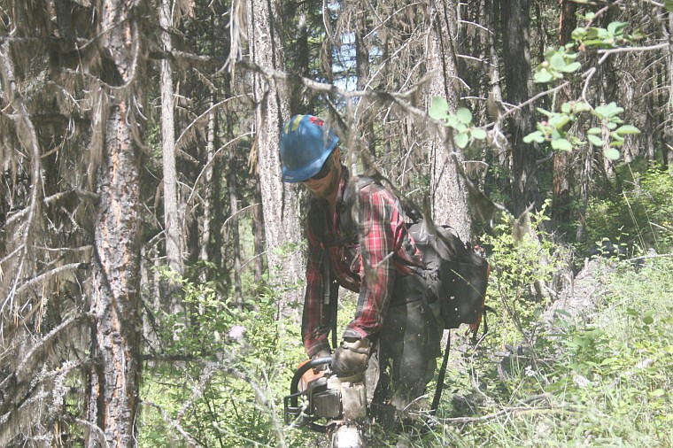 Jake Bauer works a chainsaw during one of the Forest Service's land management projects west of Superior.
