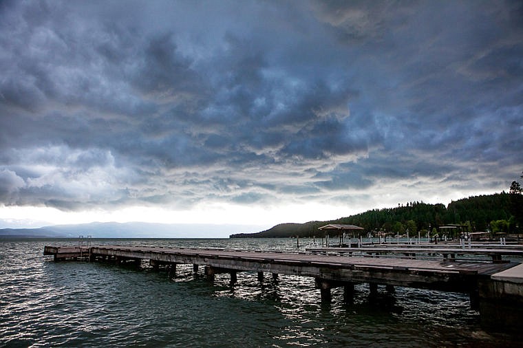 Storm clouds loom over Flathead Lake on Tuesday evening seen from Volunteer Park in Lakeside. June 3, 2014 in Kalispell, Montana. (Patrick Cote/Daily Inter Lake)
