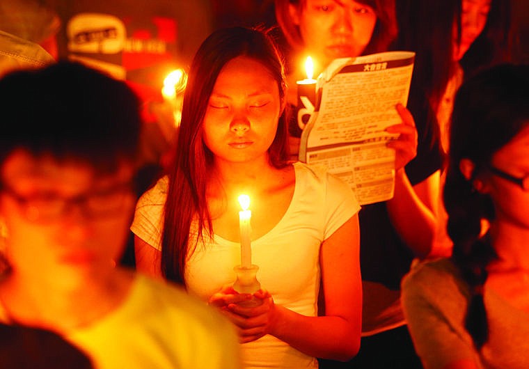 MOURNERS GATHER Wednesday to mourn those killed at Tiananmen Square in China 25 years ago. (Associated Press)