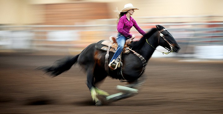 Paige Moore of Rosebud is the first-day leader in barrel racing with her 15.79 time.