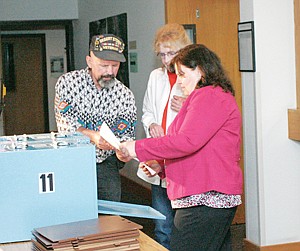 Rocke Gifford, left, Deputy Clerk Jeannie Dennis and Clerk and Recorder Tammy Lauer.