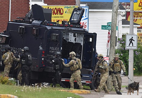 Police were using air support, tactical teams and canine units, she said. Several hundred officers from New Brunswick and elsewhere from across Canada were involved.