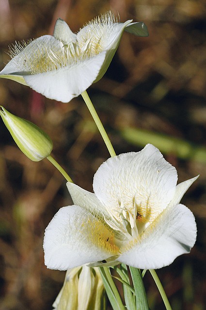 The three petals are fringed along the sides and hairy on the lower inside-half of the petal. The three-spot mariposa lily (also known as mariposa, Baker’s mariposa lily and pointed tip mariposa lily) has a small purple spot near the base of the petal.