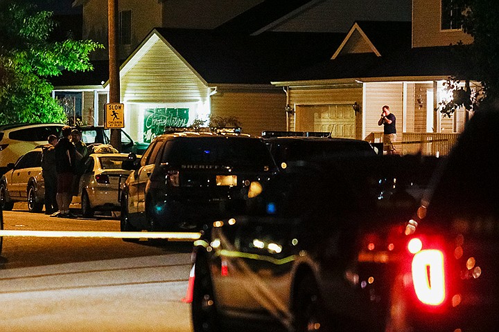 Members of the Idaho State Police Major Crimes Unit work at the scene of an officer-involved, fatal shooting Friday night in the 400 block of Dragonfly Drive in Coeur d’Alene.