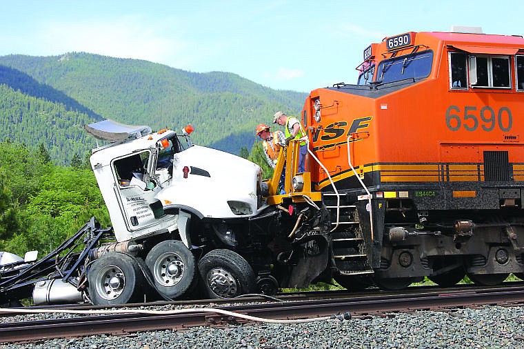 MRL crew examine the crash that took place between a train and a contracted weed sprayer three miles outside of Plains.