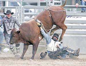 Close call for Scott Crump of Columbia Falls during Saturday's Incredi-Bull event at J. Neils Park.