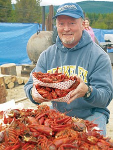Corey Richards of Bonners Ferry, with another helping of crawdads after making his way through more than 100 during Saturday afternoon. Richards said he used to come to the crawdad festival at the Yaak saloon in the 90s and was happy the event was up and running again.