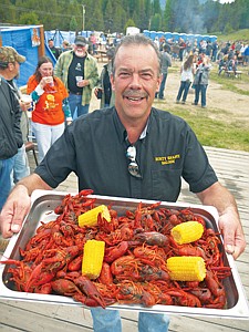 World Famous Dirty Shame Saloon co-owner John Runkle with just a few of the 2,000 pounds of crawdads at the crawdad festival on Saturday.